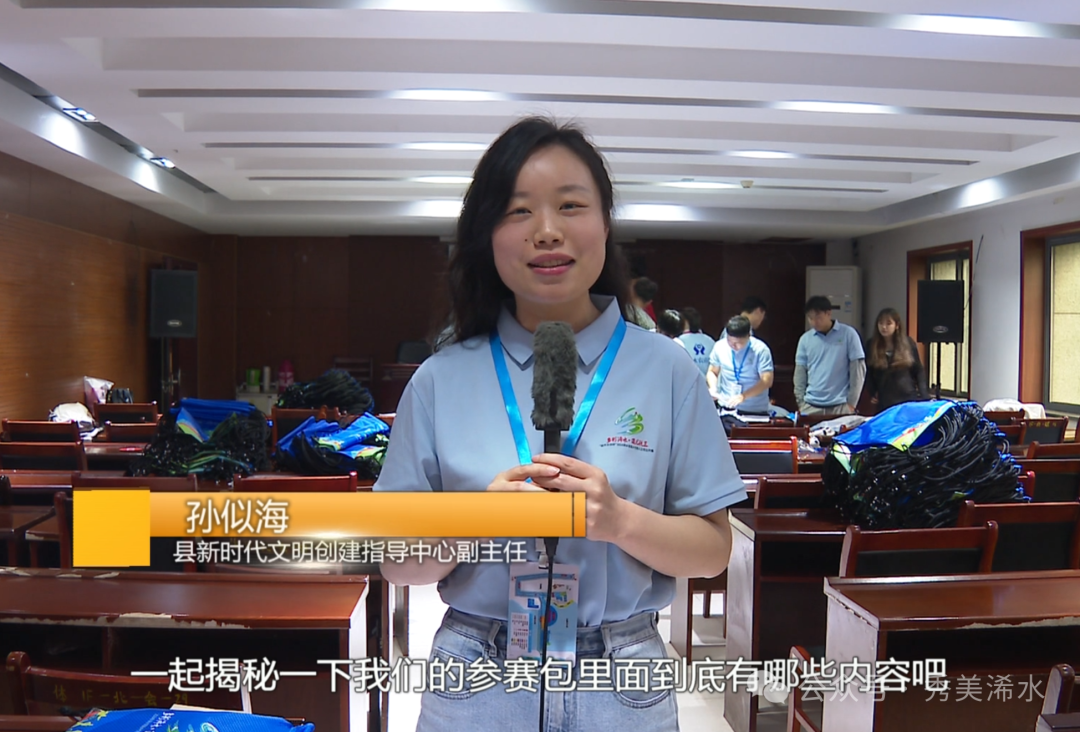 县新时代文明创建指导中心副主任 孙似海:浠水首届乡村铁人三项公开赛即将在后天拉开帷幕,今天志愿者们一起揭秘运动员参赛包里面到底有哪些内容吧。首先有车尾牌,参赛选手的车尾号码牌;有一个纹身贴,参赛选手可以戴在自己的手臂上;有一个急救医药包,给每位参赛选手准备的;有浠水杂技之乡的杂技演出票,让运动员们感受一下浠水杂技的魅力;有一个号码牌,参赛选手头盔上贴号码牌。