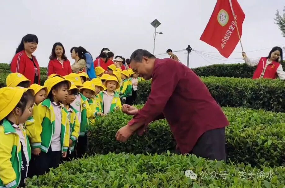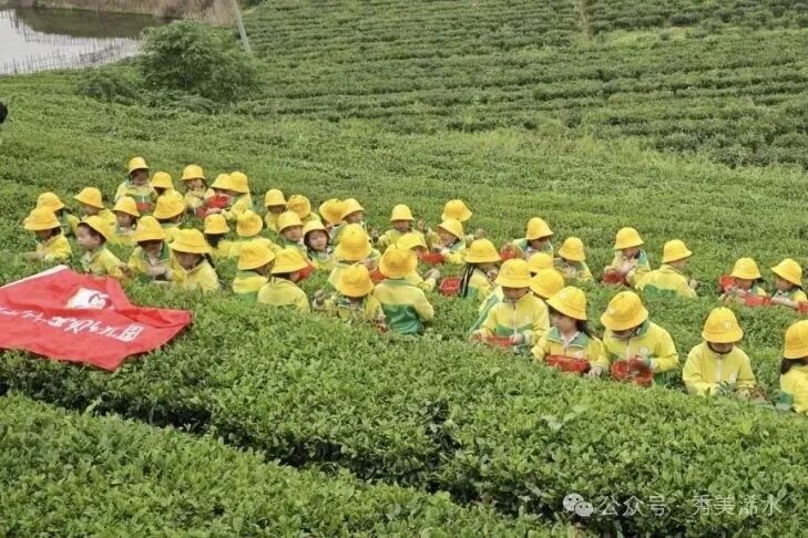 在采茶前,茶场负责人细心地向小朋友们讲解了应该如何采茶的正确方法。正式采茶时,孩子们置身于茶海之中,淡淡茶香扑面而来。他们手提小篮子,化身小“茶农”,穿梭在排排茶树之间,随着小手轻掐细挑,一片片清新翠绿的嫩芽于指间翻飞,并小心翼翼地放进篮子里,将一粒粒稚嫩的芽尖收入怀中。