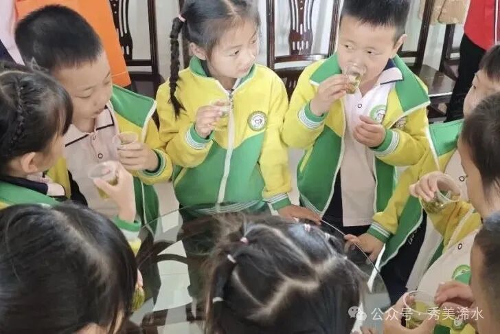 随后,孩子们带着自己采的茶叶走进制茶体验区体验非物质文化遗产——传统手工制茶。在沁人心脾的茶香中,十月茶场万爷爷介绍了茶叶的五道制作工序:杀青、扁形、脱毫、干燥、提香,并带领孩子们学习参与了茶叶制作的工序。经过多道工序,孩子们亲手采摘、炒制的茶叶新鲜出炉,当那一杯杯清香四溢的茶水端到他们面前时,他们的脸上露出了自豪的笑容,因为他们知道,这杯茶是他们亲手采摘、现场见证炒制而成的,收获满满的成就感。