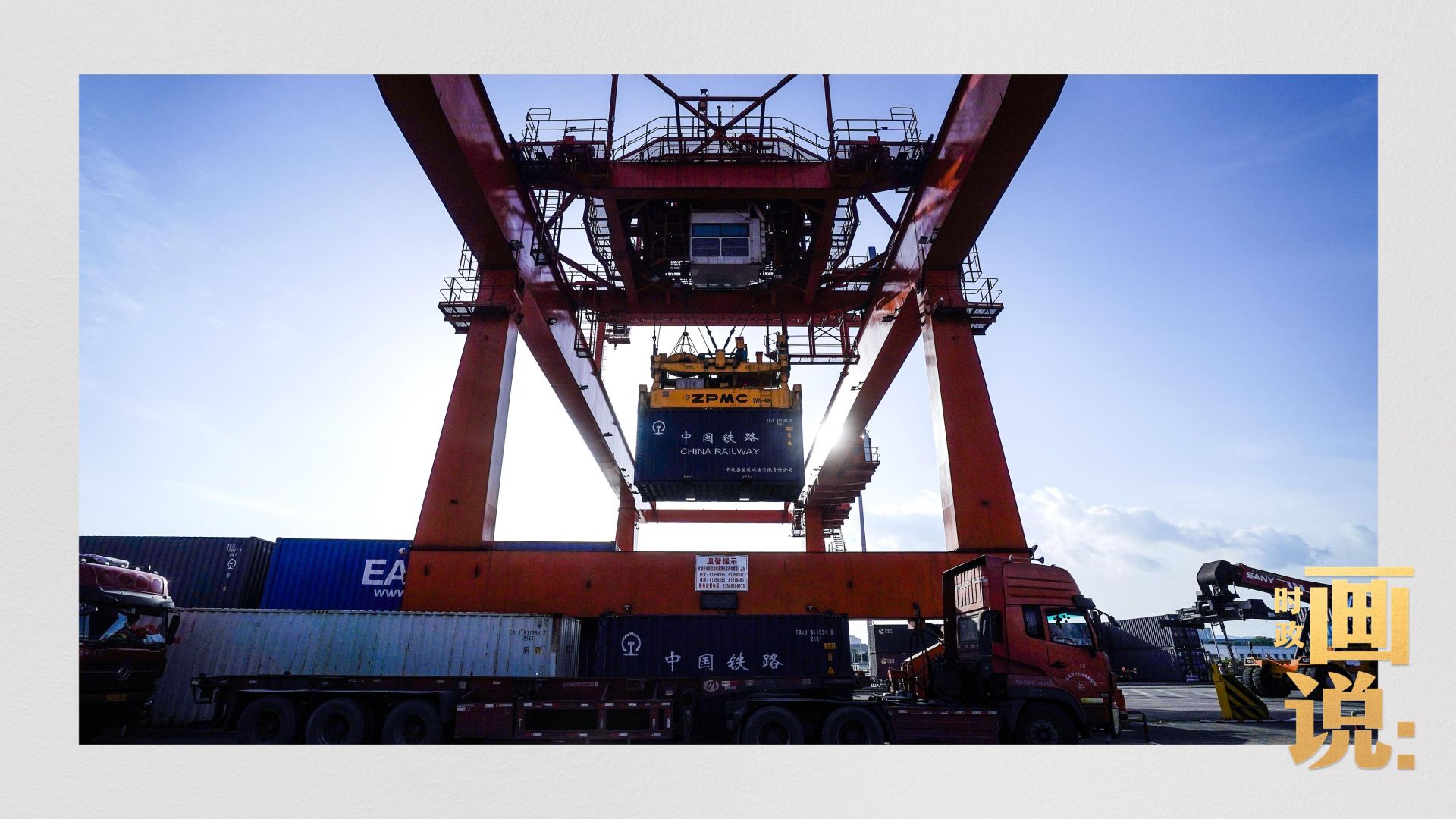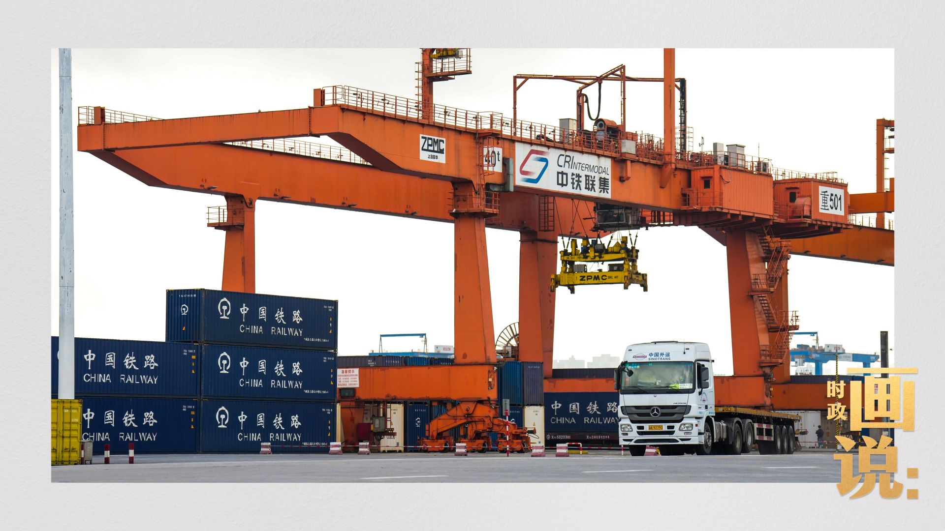 △重庆铁路集装箱中心站内,重型货车等待装箱。