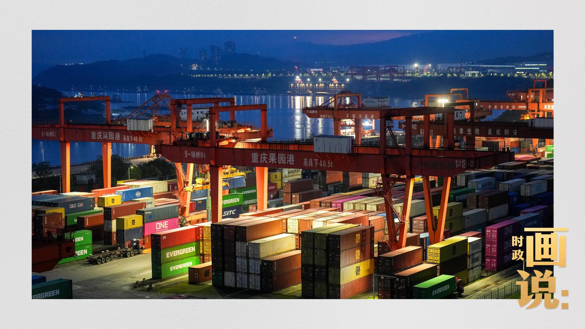 △入夜时分,果园港沿江码头平台依然灯火通明,一派繁忙。