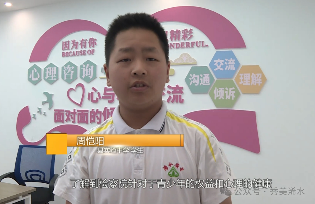 县实验中学 学生 周恺阳:了解到检察院对青少年的权益和心理的健康有很大的帮助。