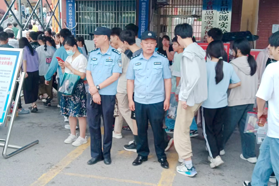 为切实做好“中考”期间道路交通安全保卫工作,县交警大队民辅警提前上岗,对考点周边道路交通进行疏导,指挥机动车和非机动车有序停放,加强考点周边重点辖区、路段、路口等交通秩序,配合机动巡逻,提醒过往车辆绕道通行和禁止鸣笛,确保中考期间各考点道路交通安全畅通、有序。