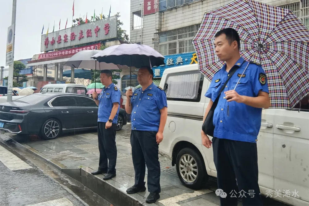 凌晨时分,城管队员仍奋战在防汛一线。在一夜的守护下,城区道路畅通,积水被及时排出,车辆正常通行。然而,还未褪去昨夜的疲惫,城管队员们在第二天清晨又来到各中考考点门前,开展护航中考的工作。