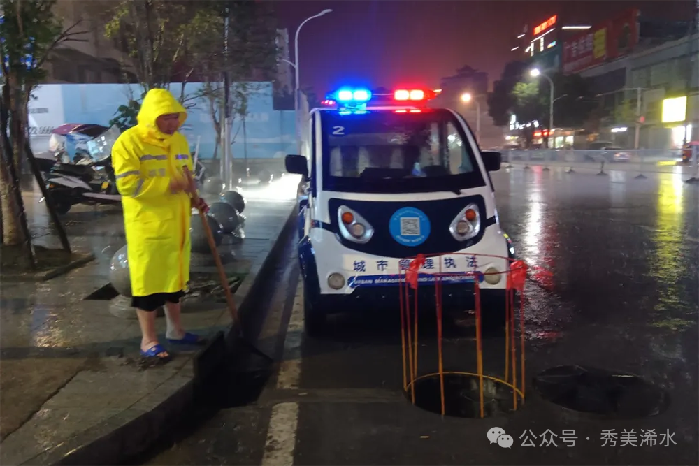 从6月19日开始,县城管执法局就采取打开雨水箅子、下水道井盖等措施,启动“人等雨”值守模式。