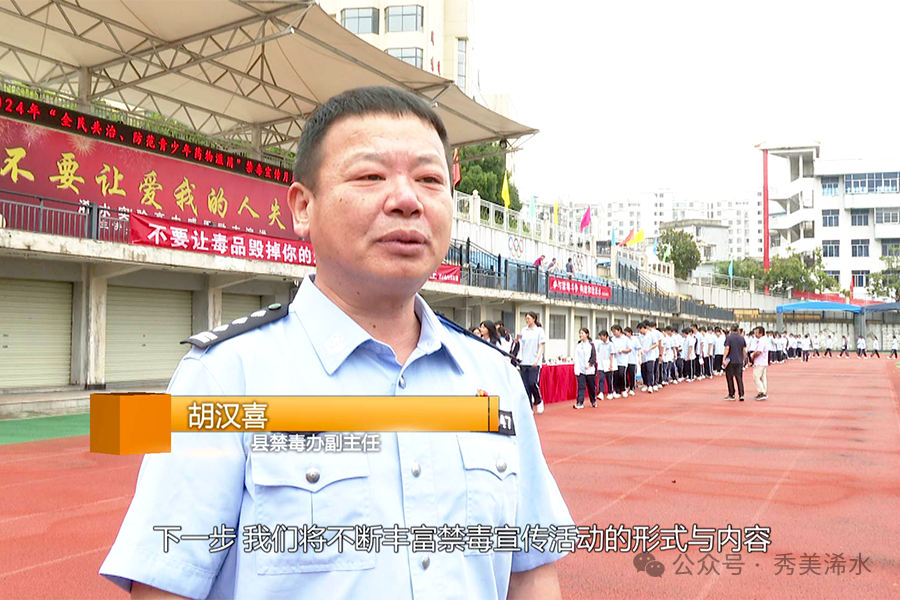 县禁毒办副主任 胡汉喜:下一步,我们将不断丰富禁毒宣传活动的形式与内容,营造浓厚的禁毒宣传教育氛围,让抵制毒品、绝不沾毒品的意识植根于学生的心田,切实增强青少年参与禁毒、预防毒品(犯罪)的意识,筑牢校园禁毒防线。