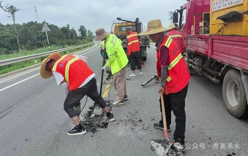 炎炎夏日,既是公路病害的高发季,也是公路养护的“黄金期”。受前期强降雨天气影响,我县境内部分国省干线路面出现了多处坑槽,给过往车辆通行带来安全隐患,浠水县交通运输局近期组织人员和机械对路面坑槽进行修补,全力以赴保障道路安全畅通。