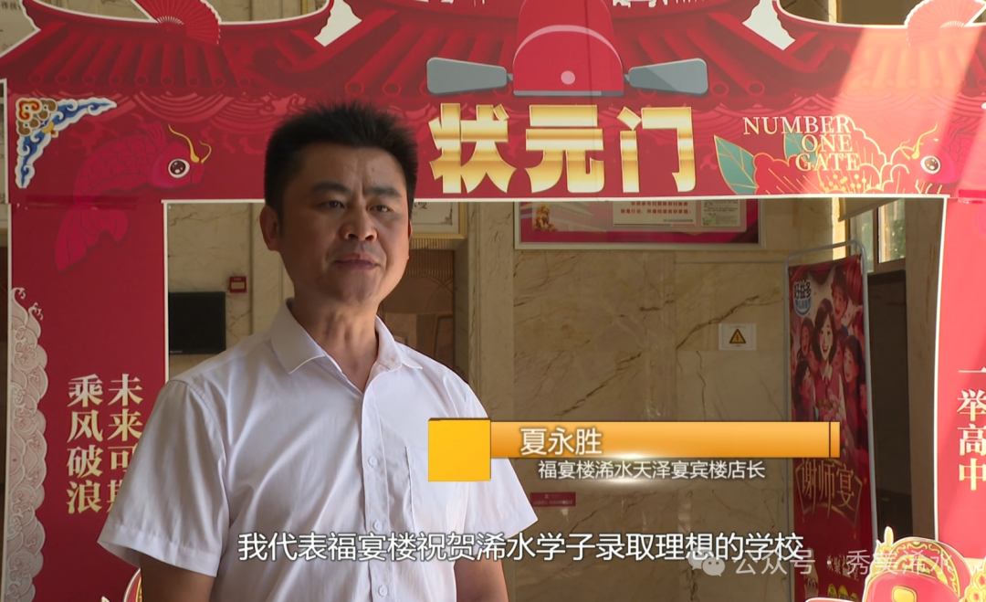 福宴楼浠水天泽宴宾楼店长 夏永胜:我代表福宴楼祝贺浠水学子录取理想的学校,我们将一如既往地为浠水教育事业出一份力,尽一份心。