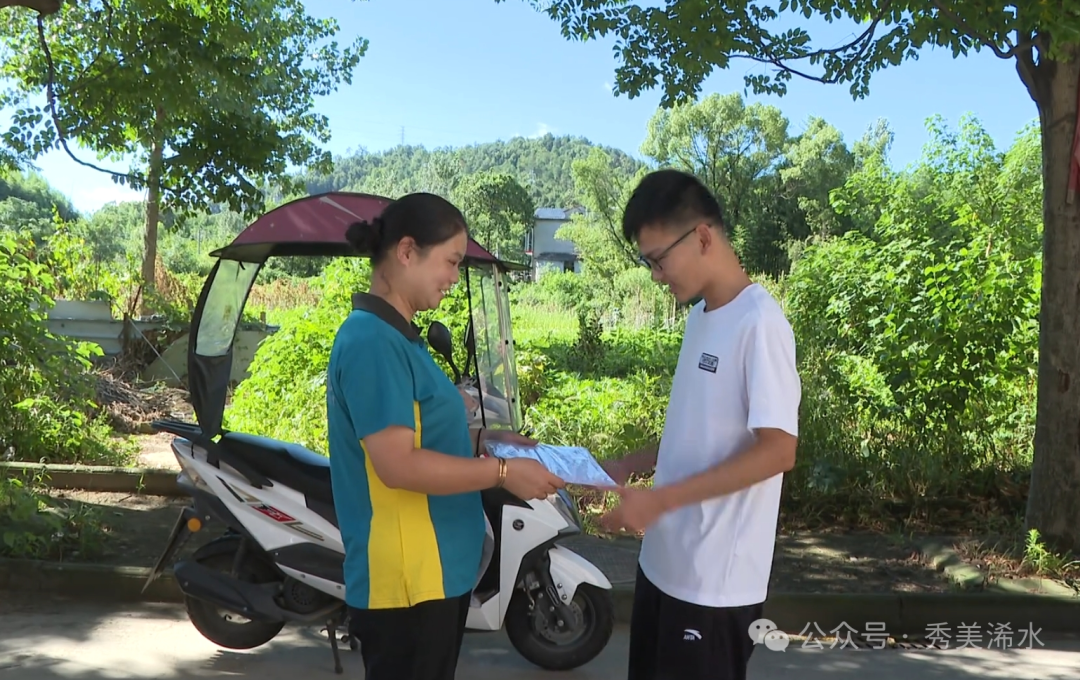 29日上午,中国邮政投递员仔细核对相关证件后,将清华大学高考录取通知书郑重地交到徐珂同学的手上,并为其送上美好的祝福。在家人和朋友的共同见证下,徐珂满怀喜悦开启了这封高考录取通知书。