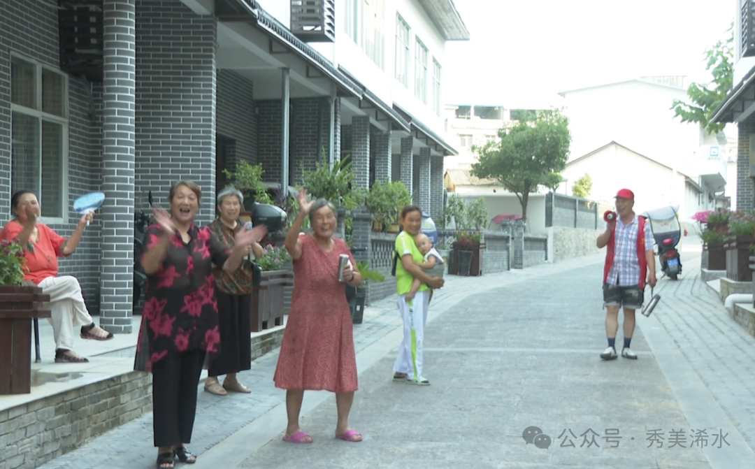 下午五点多钟,青云社区居民代表朱旭东一手提着水杯,一手拎着喇叭,向街道居民喊话,邀请街坊邻居准时参加百家宴。