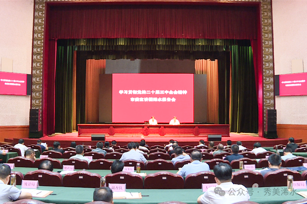 8月13日上午,学习贯彻党的二十届三中全会精神市委宣讲团浠水报告会暨县委理论学习中心组集体学习活动举行。市委宣讲团成员、市委宣传部副部长吴敬秋作宣讲报告,县委书记陈正红主持会议并作总结讲话。县委副书记、县长邓中麟参加会议。
