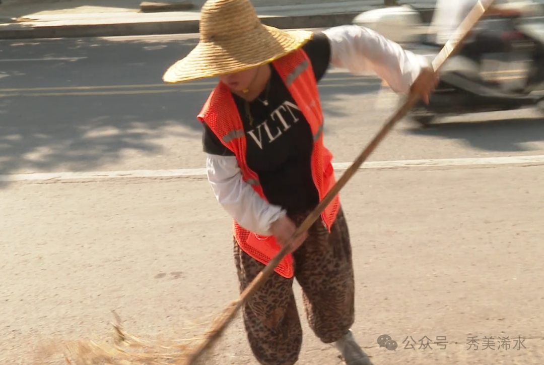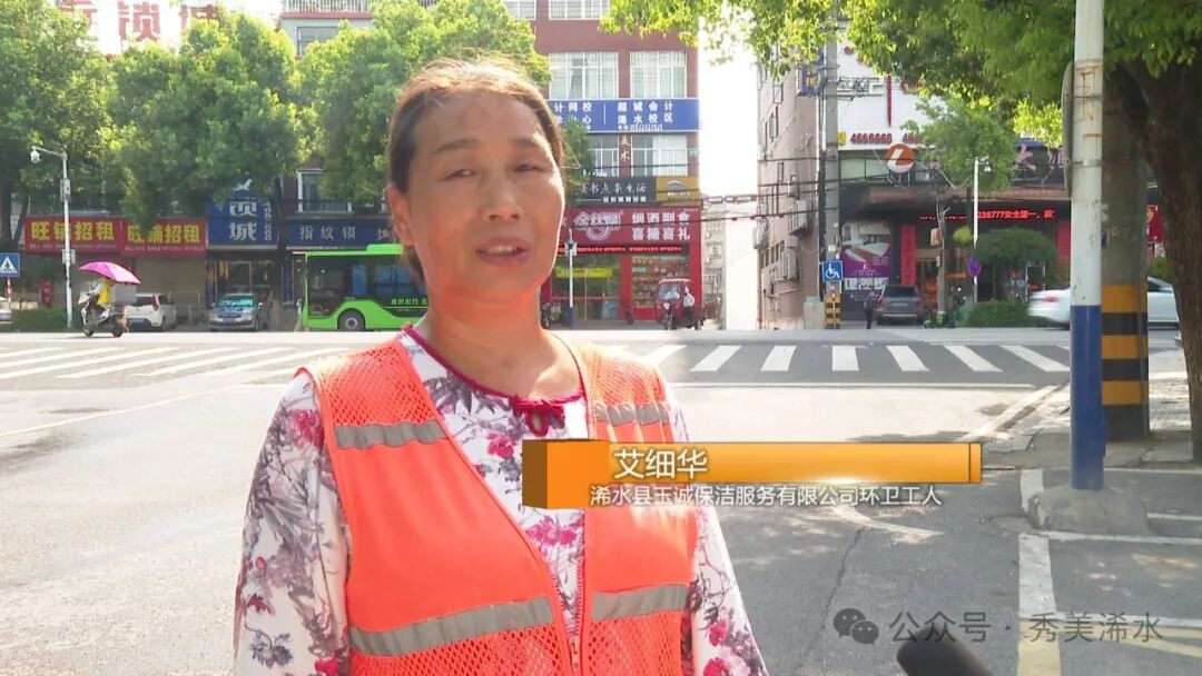 浠水县玉诚保洁服务有限公司环卫工人 艾细华:一个小时扫了两百多米,累人,这是我的本职工作,我一定把它做好。