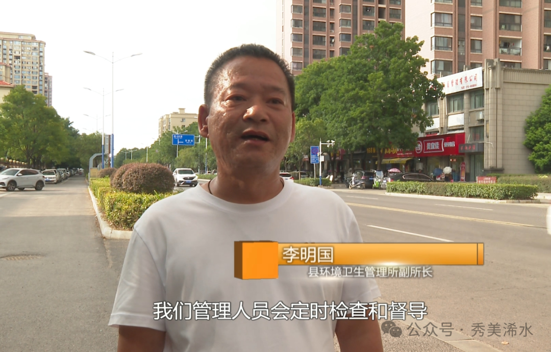 县环境卫生管理所副所长 李明国:高温天气下,我们管理人员会定时检查和督导他们的工作和安全问题。三伏天时段会相应的缩短工作时间,我们有定点的饮水站和发放防暑药品。