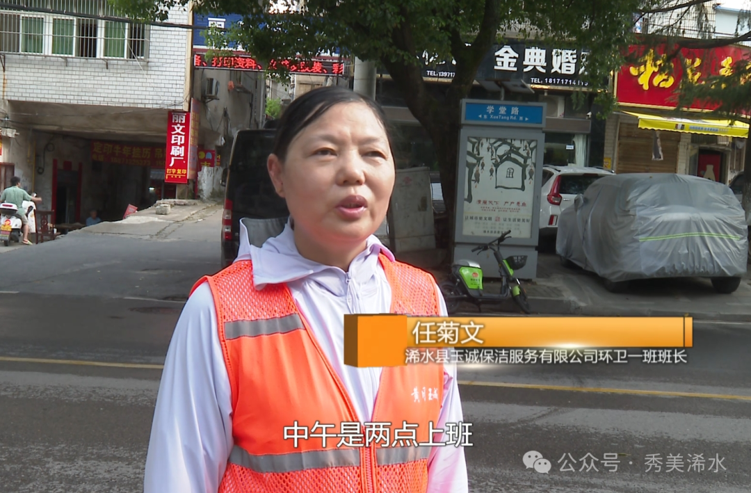 浠水县玉诚保洁服务有限公司环卫一班班长 任菊文:我们班有九个人,中午是两点上班,到下午六点半下班。