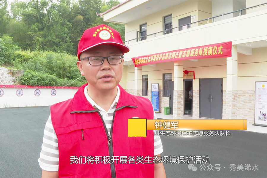 县生态环境保护志愿服务队队长 钟健军:我们将积极开展各类生态环境保护活动,宣传教育活动,传播环保理念,引导更多人关注和参与到生态环保中来,为家乡的生态环境保护工作贡献力量,让天更蓝、水更清、环境更美。