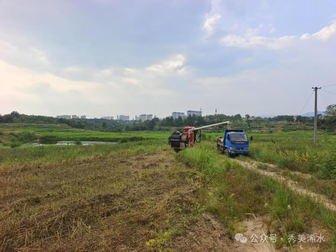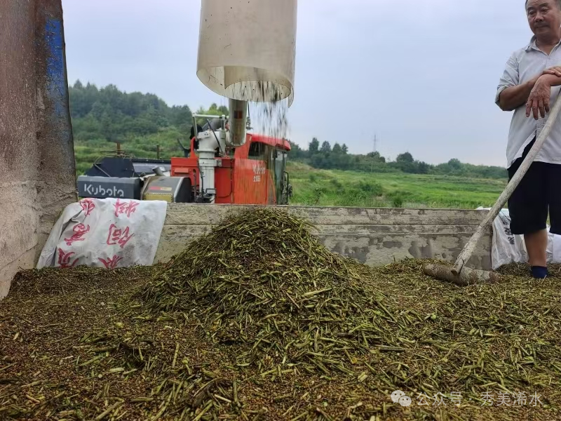 8月31日,“轰隆隆、轰隆隆…”的声音在张家坪村七组回响,收割机正在流转的150亩决明子田里收割。
