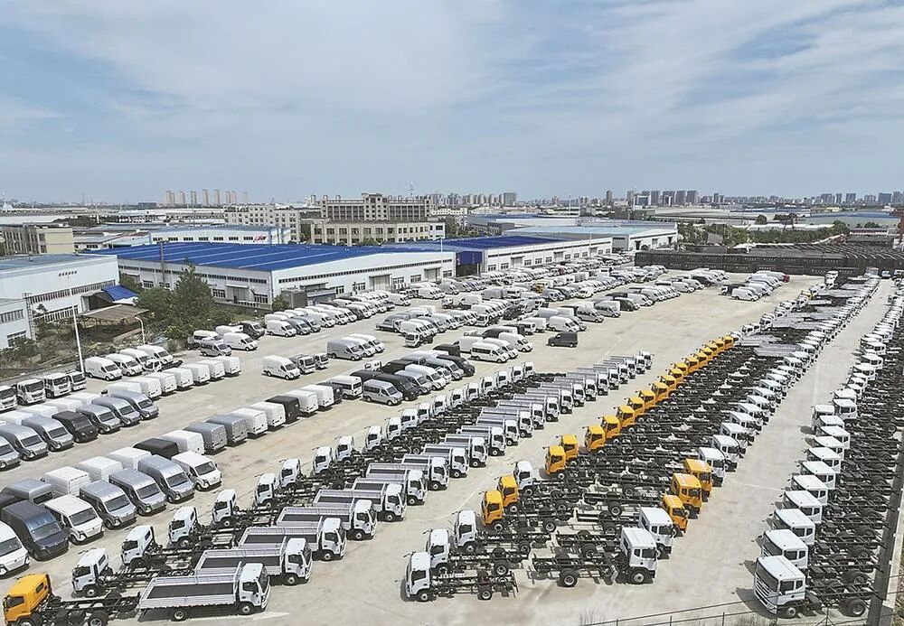5月28日,高新区刘岗货场停车场里,一辆辆轻型商用车整装待发,即将运往各地市场。全媒体记者 谢勇 摄