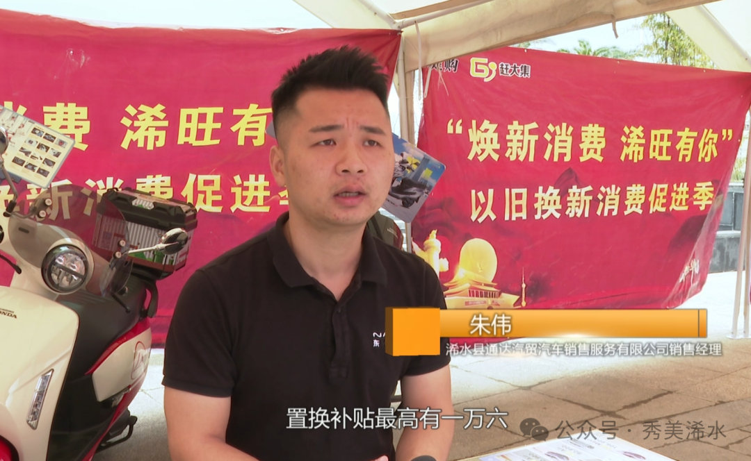 浠水县通达汽贸汽车销售服务有限公司销售经理 朱伟:“以旧换新”的活动大大增加了我们的客流量,每天客流大约有3到50批,每个月销量大概增加了三四十台左右的话,目前报废补贴最高有两万块,置换补贴最高有一万六,我们店里面电车最高优惠大概有一万二左右,油车至高优惠有五万。