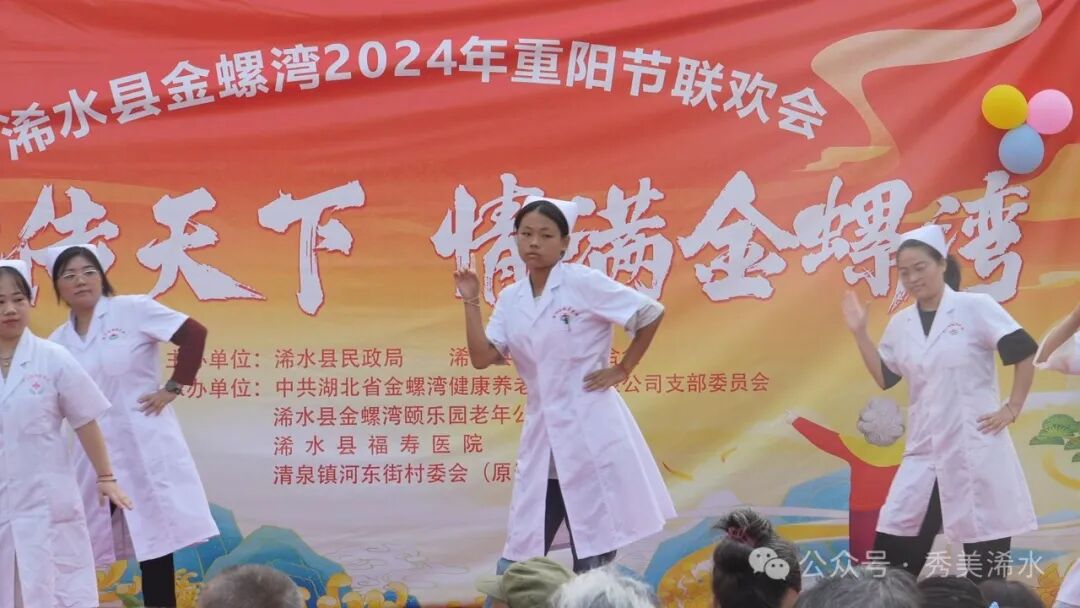 活动现场,公寓长者、员工、社区居民以及雨露幼儿园的老师和小朋友相继表演,节目内容丰富、精彩纷呈,歌曲《洪湖水浪打浪》、《父亲》,诗歌朗诵《情满金螺湾》,舞蹈《吉祥》、三句半《夸夸我们的养老院》等节目轮番上演。悠扬的曲韵,高亢的歌声赢得老人阵阵掌声。