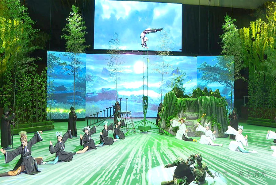当晚,由该团和县文旅局共同出品,投资150万元,历时8个月创排的杂技剧《黑白侠影·太极熊猫》正式首演。该剧融合杂技、武术、黄梅戏等多种艺术形式,舞台效果精美,中国风味浓郁。全剧时长90分钟,以国宝大熊猫为主角,讲述一段勇敢与成长的传奇历程。随着剧情推进,车技、绸吊、柔术、双人吊子等绝技次第展现,不断引发如潮掌声。