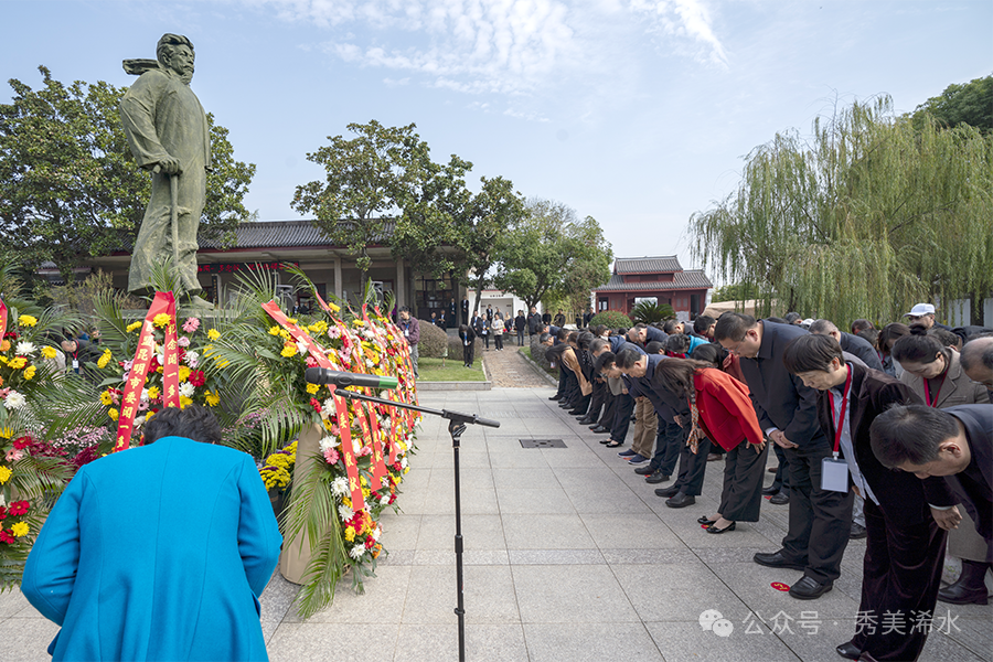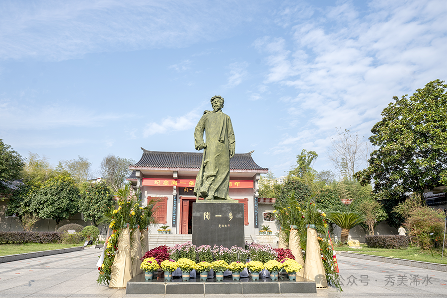 上午九时许,闻一多纪念馆庄严肃穆,闻一多诞辰125周年纪念仪式在这里隆重举行。在闻一多先生铜像前,依次摆放着民盟中央、闻一多亲属、民盟湖北省委、中共黄冈市委统战部、民盟黄冈市委和中共浠水县委敬献的花篮。全体人员向闻一多铜像三鞠躬,表达对先生的缅怀之情和深深敬意。张峰、杨云彦、李玲、闻丹青、邓中麟分别在纪念仪式上致辞,湖北省人大常委会副秘书长、民盟湖北省委副主委、民盟黄冈市委主委陈少敏主持纪念仪式。