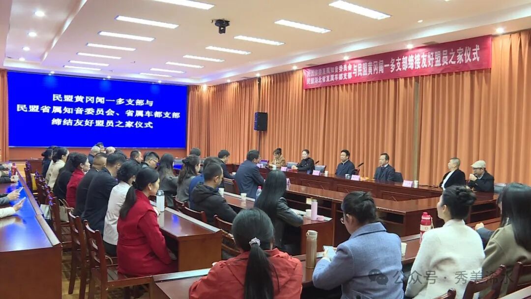 11月21日下午,民盟湖北省委直属知音委员会、车都支部与民盟黄冈闻一多支部签署友好盟员之家协议。民盟湖北省委直属知音委员会主委陈永明、车都支部副主委姚良军出席活动并为友好盟员之家揭牌。民盟湖北省委直属各基层组织代表、民盟黄冈闻一多支部和黄冈盟员代表参加活动。