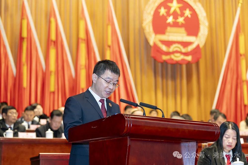 受县人大常委会委托,县人大常委会副主任宋雪聪向大会报告工作。报告指出,2024年,县人大常委会在县委的正确领导下,坚持党的领导、人民当家作主、依法治国有机统一,切实履行宪法法律赋予的各项职责,坚持和发展全过程人民民主,支持和保障代表依法履职,不断加强和改进新时代浠水人大工作,圆满完成了各项工作任务,为浠水高质量发展作出了积极贡献。 关于做好2025年人大工作,报告强调,要坚持以习近平新时代中国特色社会主义思想为指导,深入贯彻习近平法治思想和习近平总书记关于坚持和完善人民代表大会制度的重要思想,全面贯彻党的二十大和二十届三中全会精神,贯彻落实省委十二届八次、九次全会及市委六届九次全会、县委十五届十次全会精神,坚持以人民为中心的发展思想,深入开展全过程人民民主浠水实践,紧紧依靠全县人民和各级代表,守正创新、务实有效地开展好人大各项工作。