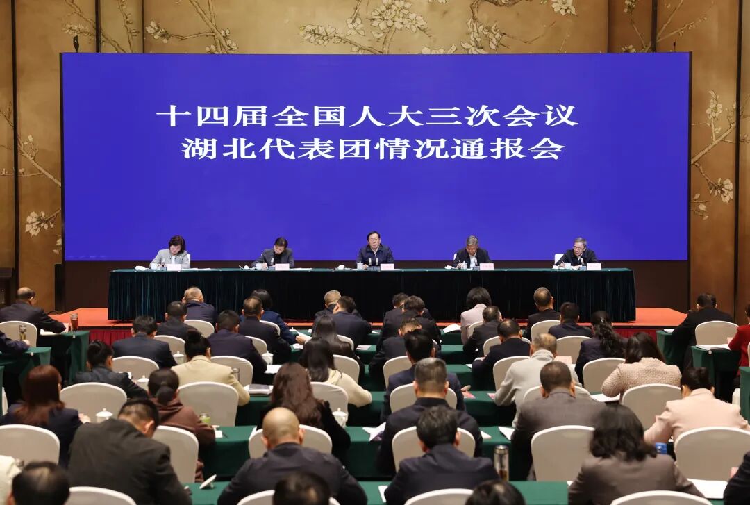 全国人大代表、省委副书记、省长李殿勋通报2024年我省经济社会发展情况。全国人大代表、省人大常委会党组书记、常务副主任王艳玲主持会议,通报湖北代表团组团情况和有关事项。
