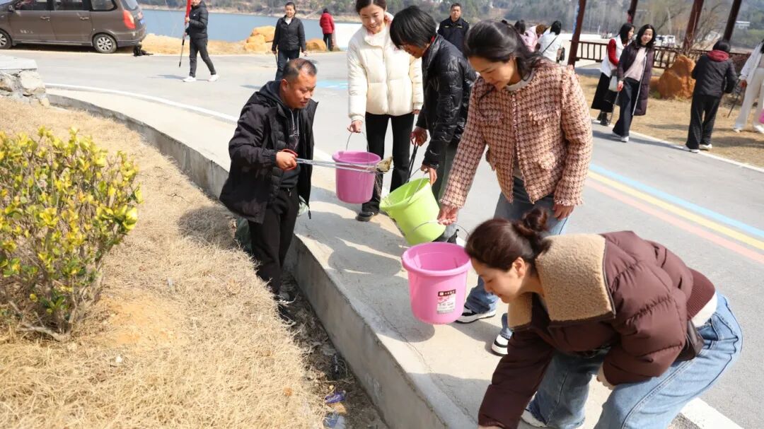 抵达白莲河畔,眼前的景色令人心旷神怡。碧波荡漾的河水、郁郁葱葱的树木、错落有致的村庄,构成了一幅美丽的画卷。女职工们纷纷拿出手机,记录下这难忘的时刻。然而,在欣赏美景的同时,她们并没有忘记此行的另一项重要任务——践行精细化城市管理精神,对沿途的垃圾进行清理。