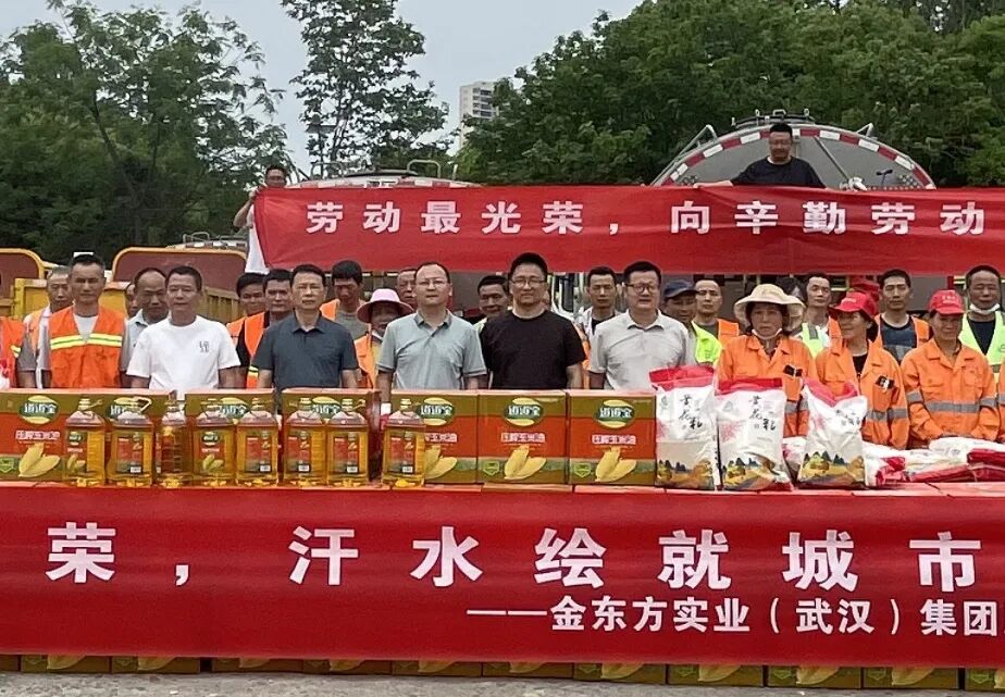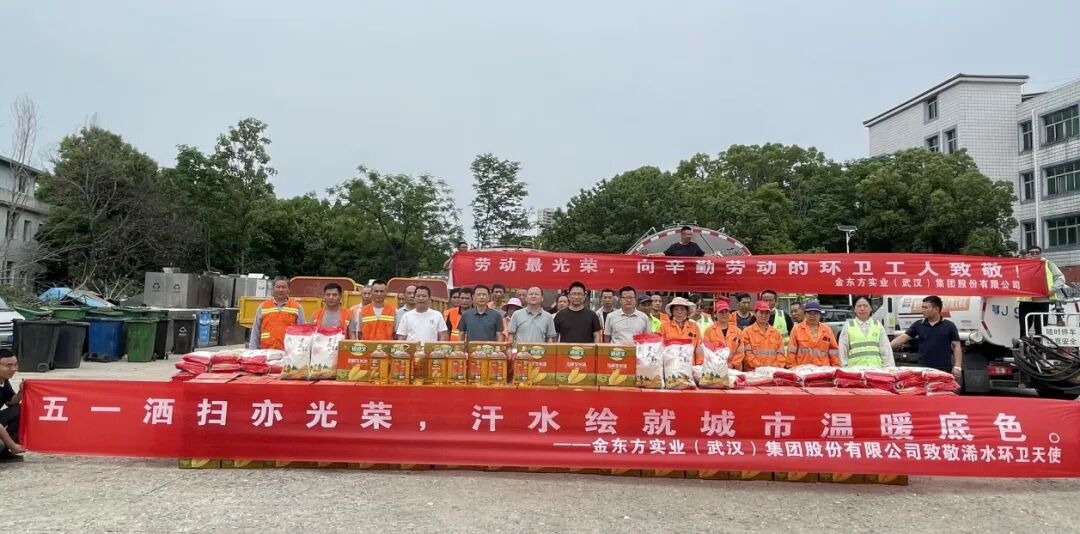 4月30日,在“五一”国际劳动节到来之际,浠水县城市管理执法局与金东方实业(武汉)集团股份有限公司(以下简称“金东方集团”)携手开展了一场温馨的慰问活动,向浠水县一线环卫工人致以节日的问候,并捐赠了丰富的过节物资,以实际行动表达对“城市美容师”的深切关怀和崇高敬意。