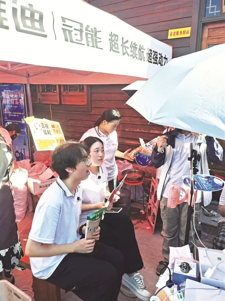 记者注意到,集市上多个摊位前架着手机支架,主播们热情地向线上观众介绍商品,甚至设有专门的助农直播间。“大家看,这是我们的特色红薯粉,无添加纯天然,久煮不烂,15.9元两袋,快来下单吧。”在助农直播间里,观众互动不断,订单量持续攀升。