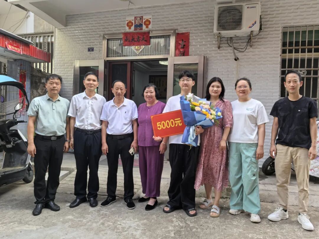 7月31日上午,浠水县总工会党组书记、常务副主席谢红梅,县教育局党委书记、局长周华雄,浠书一中党委书记周七零、校长占子龙等一行到清泉镇走访慰问2025年高考优秀学子代表占子谦,向他考上清华大学表示了热烈的祝贺,并送上慰问金。