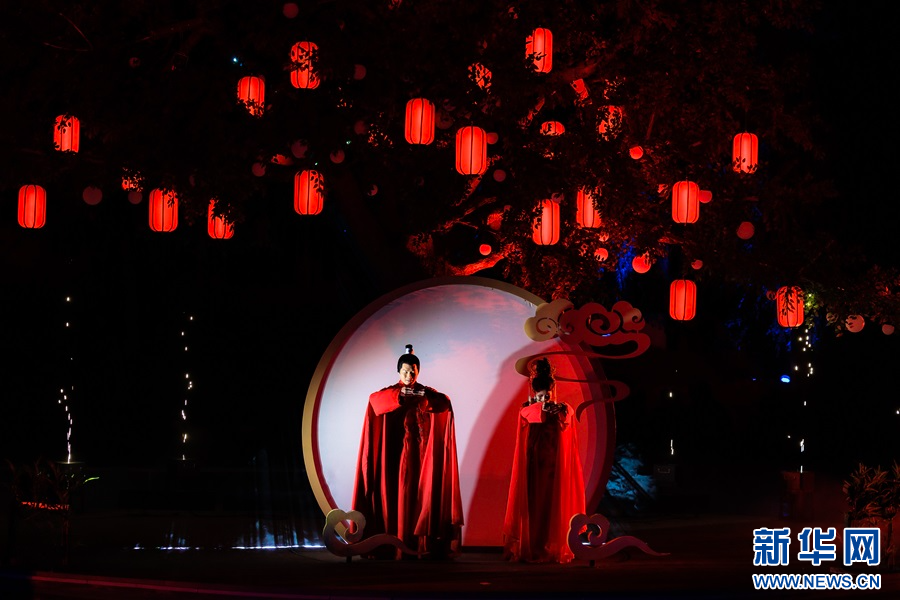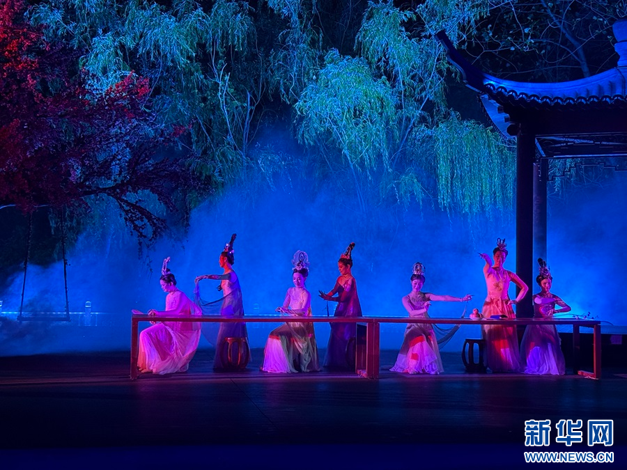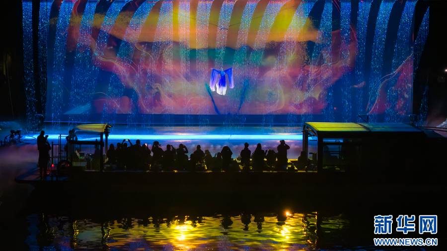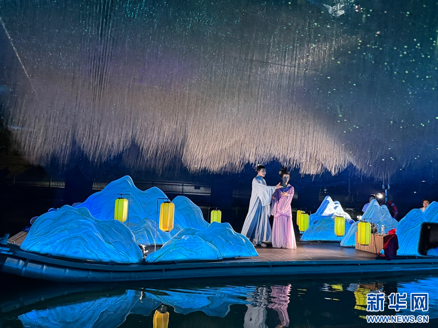 图为沉浸式水上夜游演出《槐荫船说》现场。