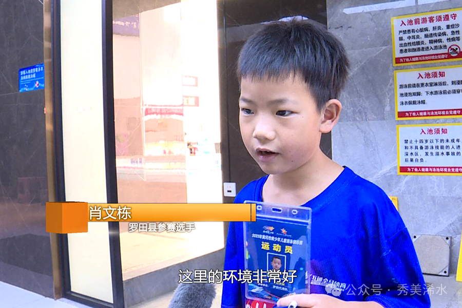 罗田县参赛选手 肖文栋:这里的环境非常好,我在这里游得很开心,我要像潘展乐一样参加国际游泳比赛。