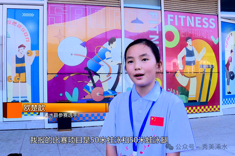 浠水县参赛选手 欧楚歆:我学游泳两个月了,我报的比赛项目是50米蛙泳和50米蛙泳腿,我希望能够进入决赛。