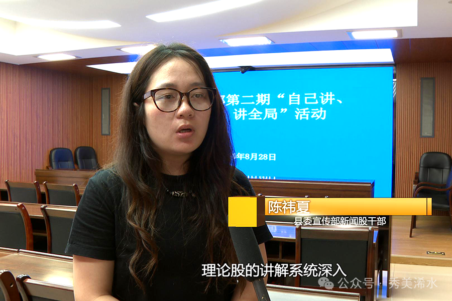 县委宣传部理论股股长 洪甜甜:我觉得备课的过程其实也是对本岗位工作的一个系统梳理和深入思考,能够让我们跳出自身科室的“一亩三分地”,对宣传思想文化工作有一个全局性的掌握,然后能够让我们更好地去找准定位,开展工作。