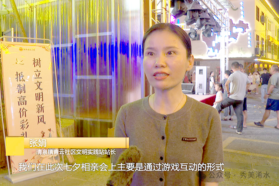 清泉镇青云社区文明实践站站长 张娟:我们在七夕相亲会主要是通过游戏互动的形式,在轻松愉快的氛围中倡导抵制高价彩礼,培育文明婚恋新风观念。