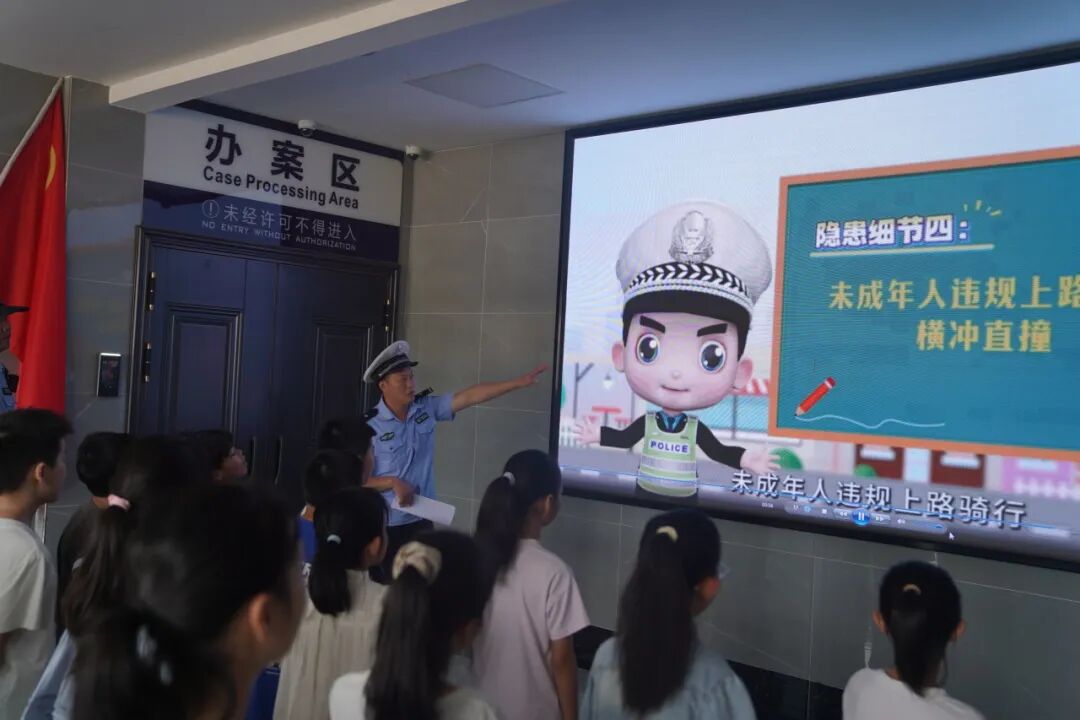 活动现场,民警结合学生上下学出行特点,通过精心制作的PPT课件,用通俗语言讲解步行、乘车、过马路等交通安全常识,解读常见交通标志;同时结合典型案例,剖析不遵守交通规则的危害,叮嘱学生牢记“知危险、会避险”,养成文明出行习惯。