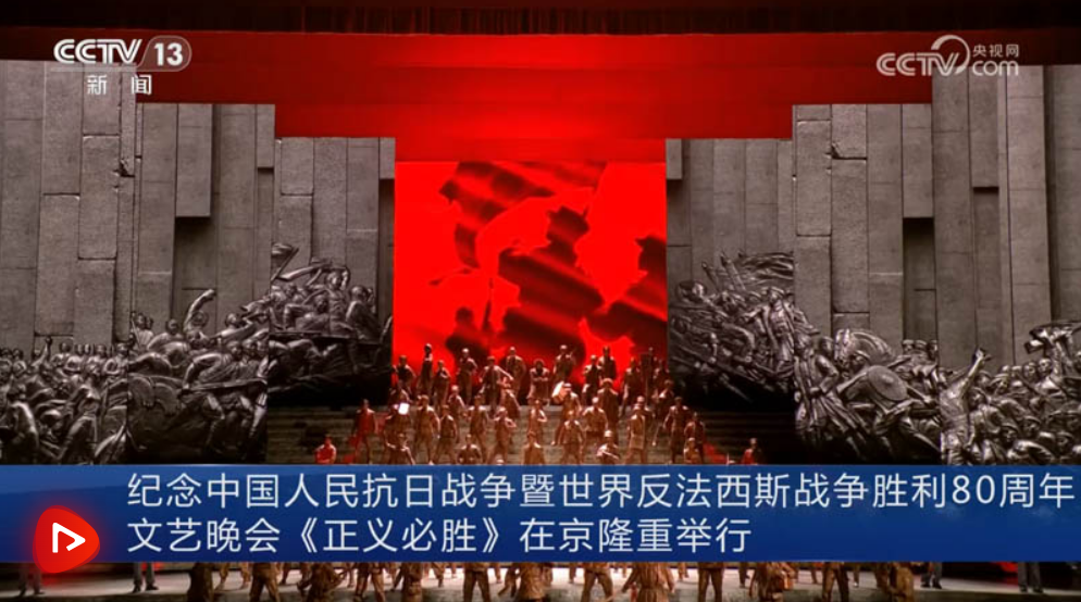 9月3日,纪念中国人民抗日战争暨世界反法西斯战争胜利80周年文艺晚会《正义必胜》在北京人民大会堂隆重举行。习近平、李强、赵乐际、王沪宁、蔡奇、丁薛祥、李希、韩正等党和国家领导人,与约6000名中外人士一起观看晚会。
