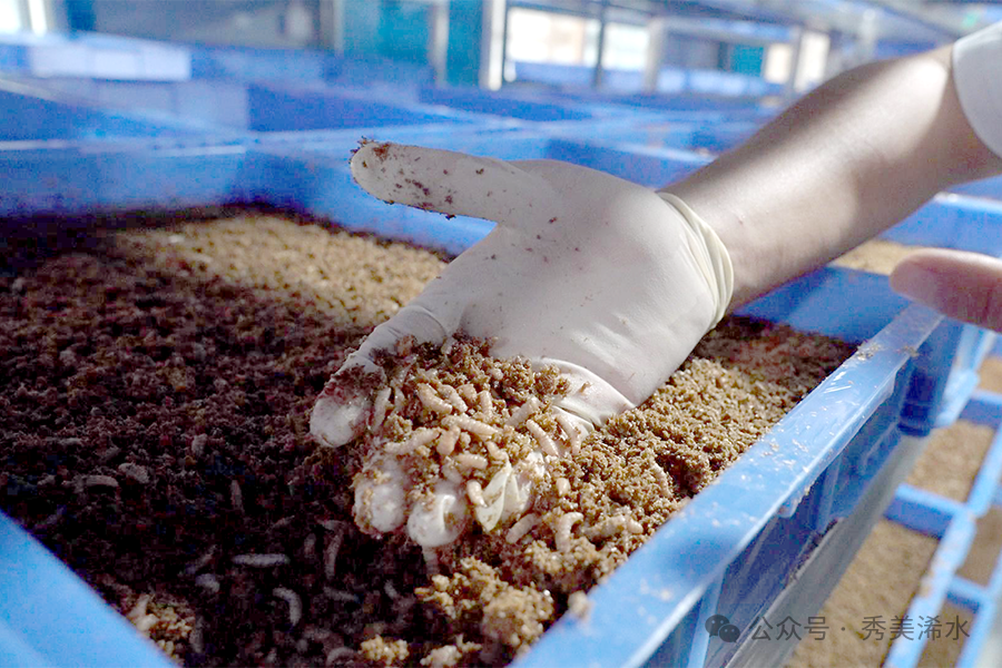 走进公司车间,养殖盒整齐排列,黑水虻幼虫正大口“消灭”着有机废弃物。这些不起眼的小虫,一个月内就能将垃圾转化为高蛋白饲料和优质有机肥。