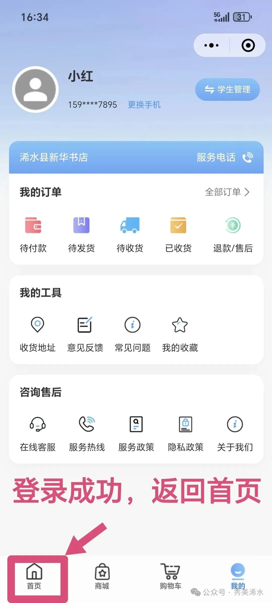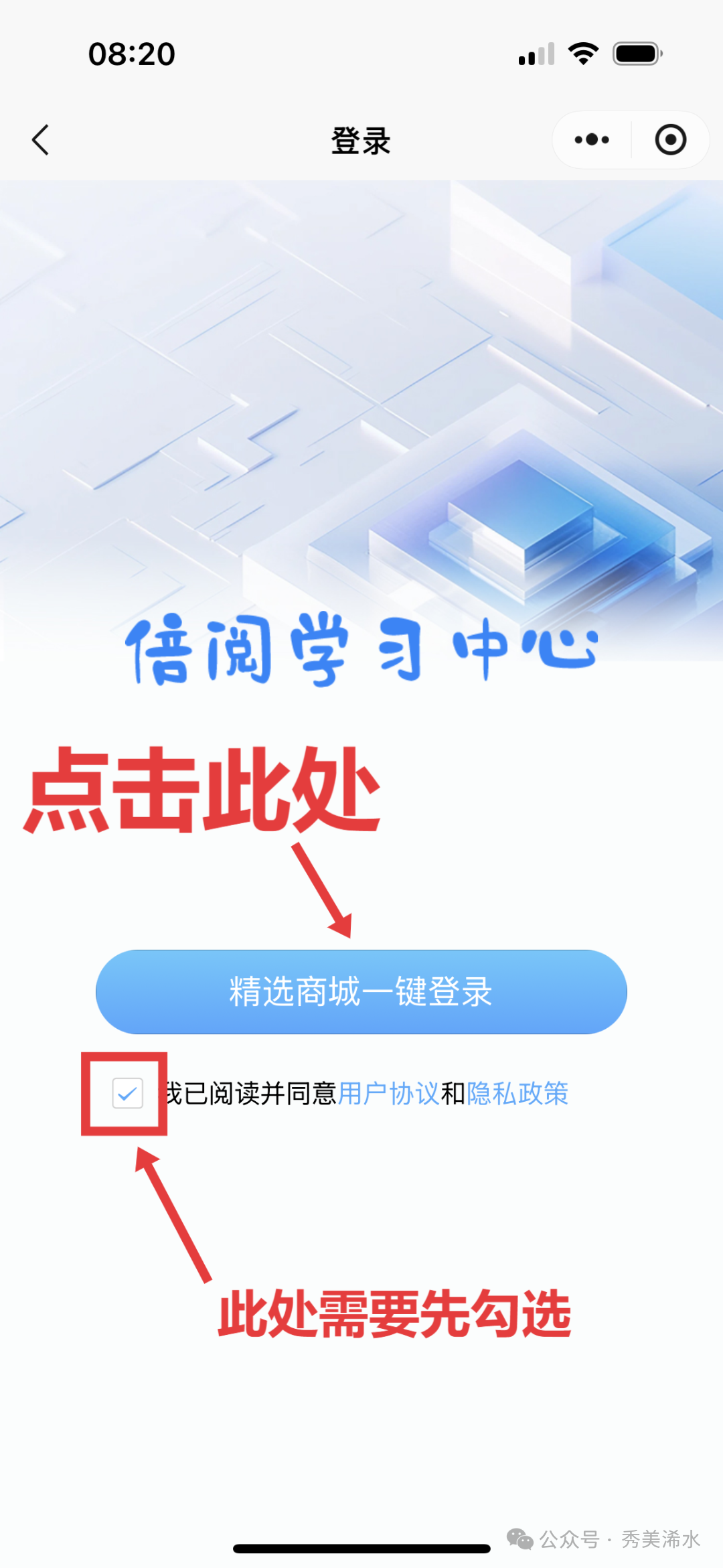 扫描各学校“倍阅学习中心”二维码或微信搜索“倍阅学习中心” → 点击屏幕上方登录 → 勾选“我已阅读并同意用户协议和隐私政策”并点击“一键登录” → 返回首页点击预售,核对或新增学生信息