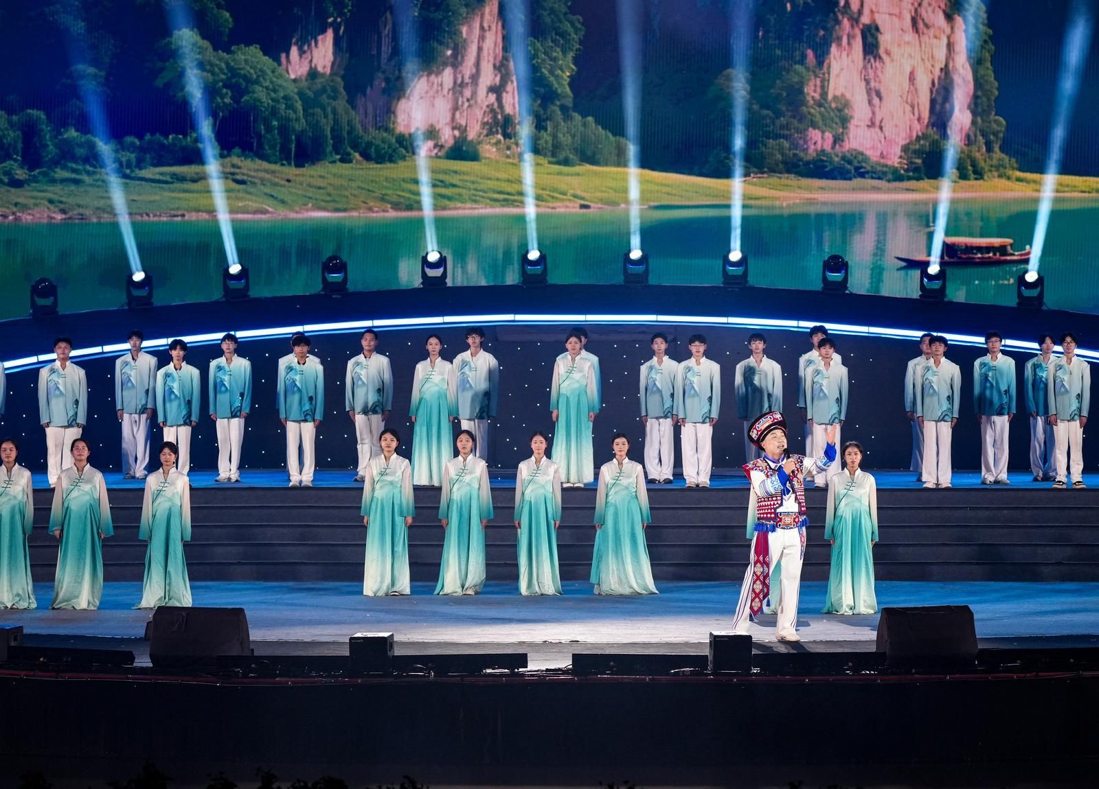 “水生万物,生出这烟火人间……”悠扬舒缓的歌声,与远处潺潺的江流、连绵的翠峦相映成画,谱写出最具宜昌风味的《水之韵》。