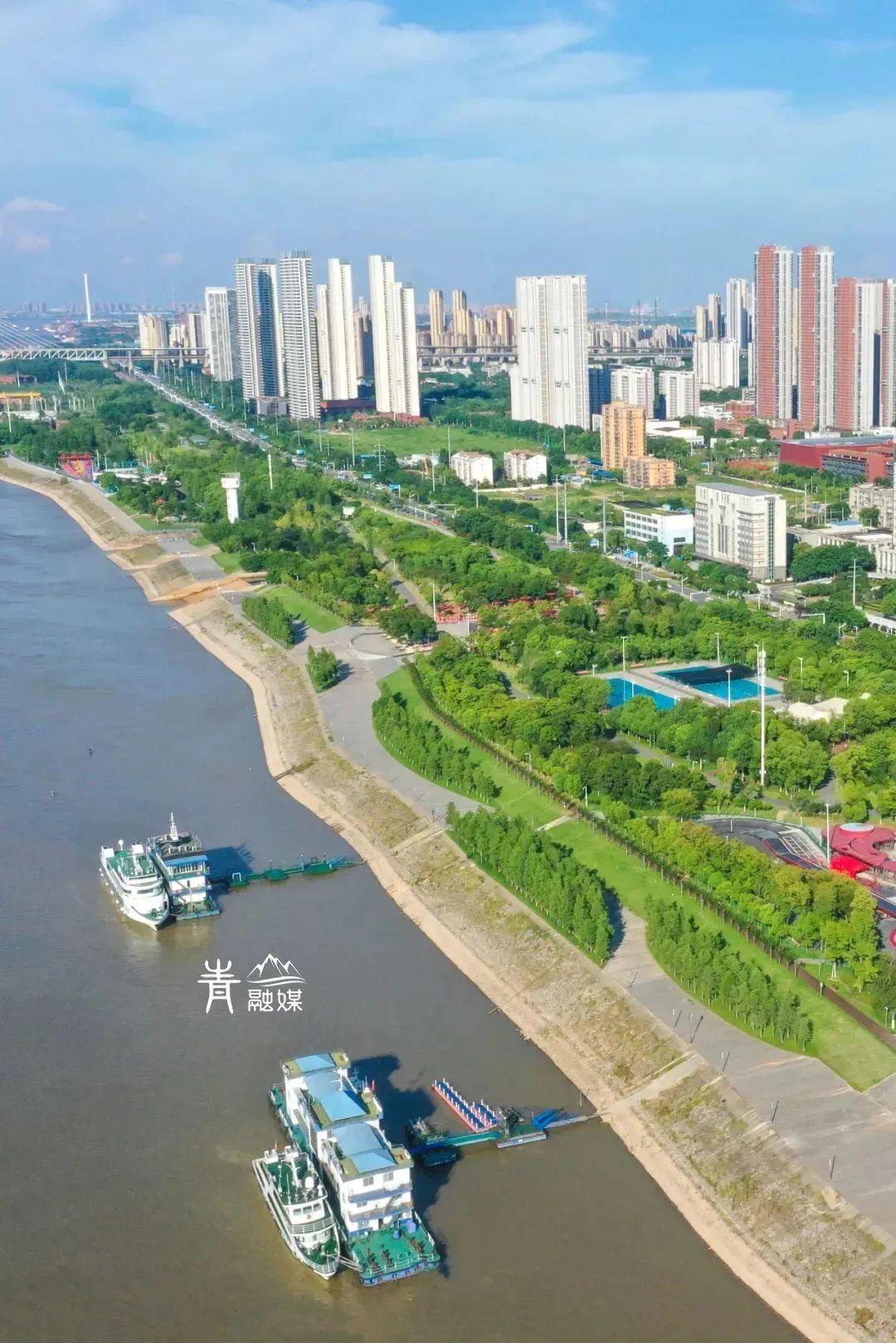 “这江滩啊,就是一本记录了我家几代人生活变迁的老相册!”在青山江滩的生态缓坡上,80岁的胡昇老人用手机拍摄江景,他身后锈红色的龙门吊艺术装置,与绿意盎然的生态草溪形成奇妙对话。