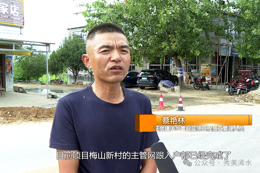 汪岗镇供水管网延伸工程施工管理人员 蔡艳林:目前项目梅山新村的主管网跟入户都已经完成了。剩下的村,主管网在进行(施工),预计10月中旬完工。