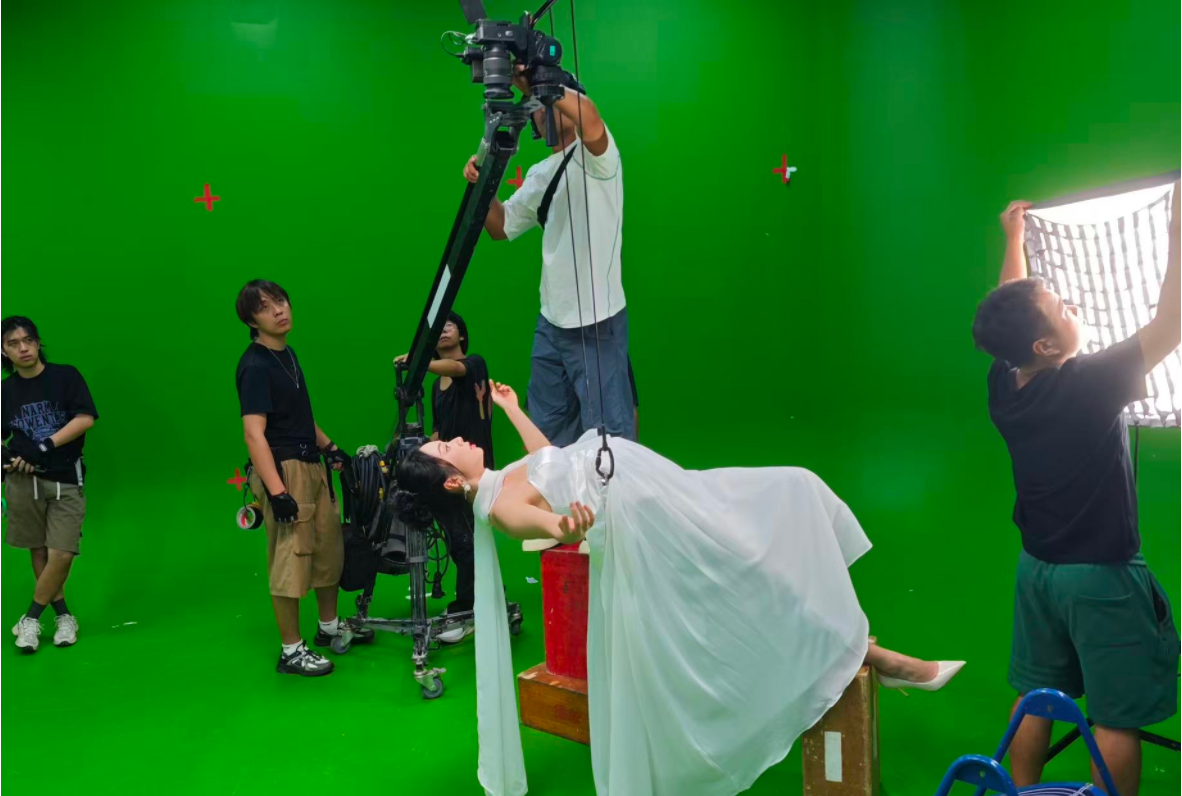 在长江视听微短剧产业基地进行拍摄的微短剧剧组。产业基地 供图
