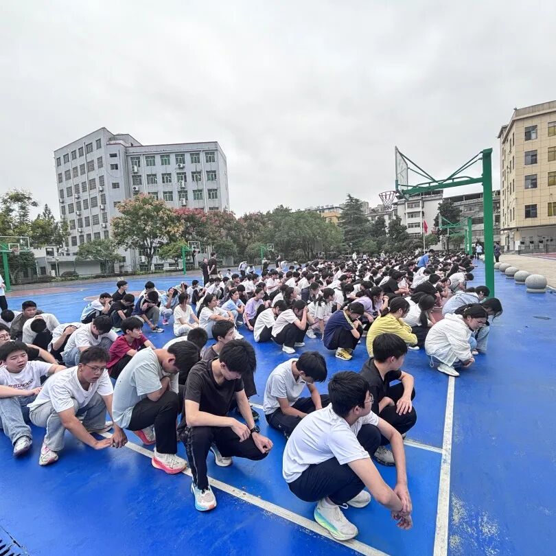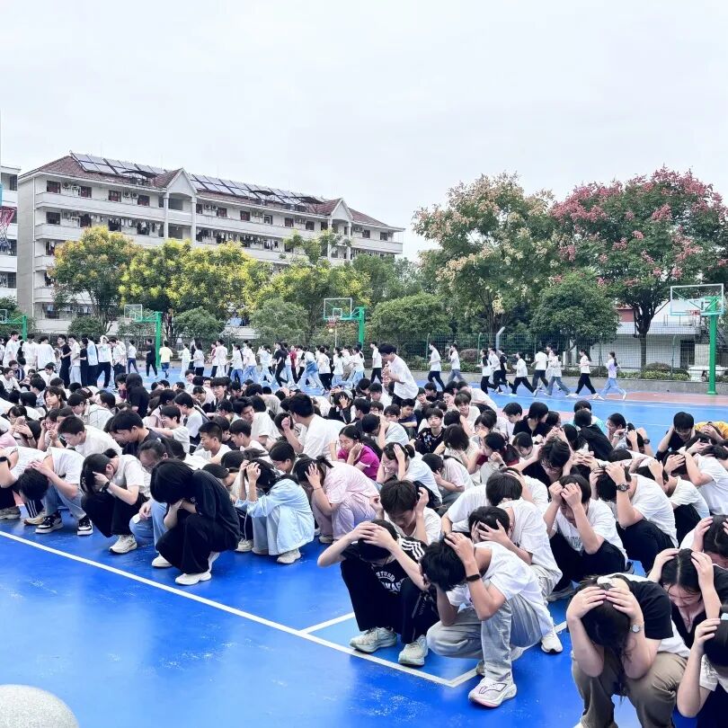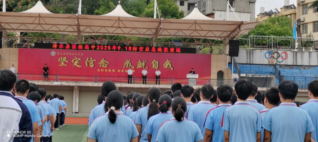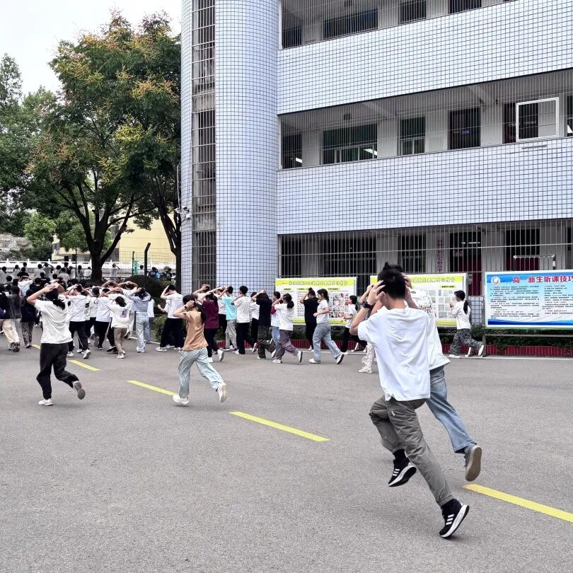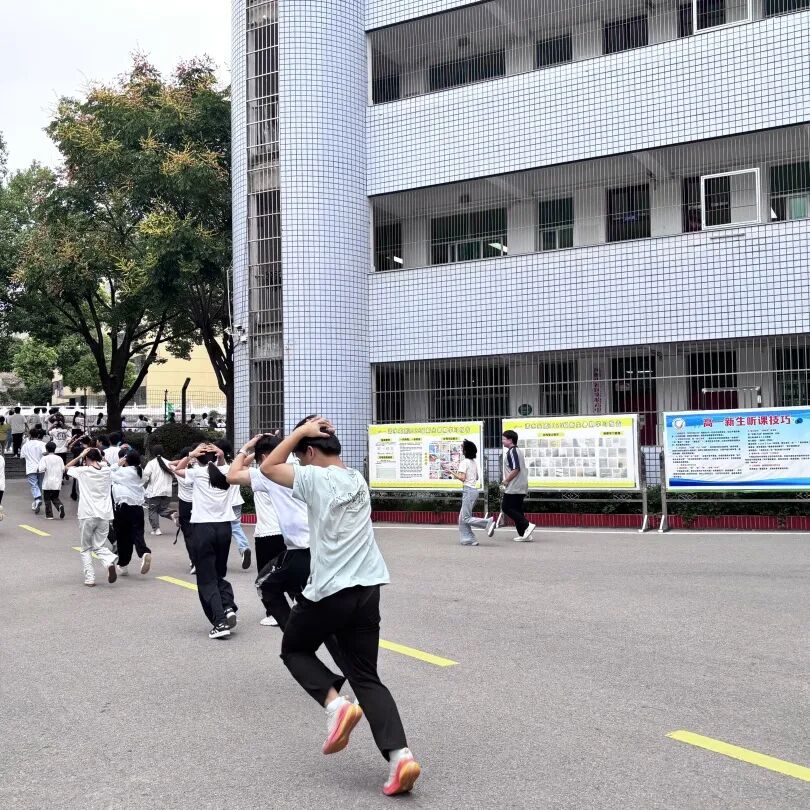 浠水实验高中高度重视此次演习活动,将其作为一堂深刻的爱国主义教育和安全教育实践课。演习前专门召开了防空疏散演习工作部署会议,提前召开专题会议进行周密部署。会议明确了各部门及教师的职责与分工,详细规划了各班级的疏散路线,并特别强调必须将“学生安全”放在首位,要求各班提前开展安全教育,确保每位学生熟悉流程和注意事项。9月18日上午9点整,防空警报响起。全体师生立即响应,上课教师迅速组织学生分两列从前后门撤离。各关键位置疏导员均已就位,指引路线,提醒安全。同学们沉着冷静,用手护头,沿指定路线快速向操场集结。空袭警报响彻期间,疏散工作高效进行;解除警报鸣响时,全体师生已安全抵达集合点并完成人数清点。集合完毕后,学生代表进行了防空应急疏散演习的亲身体会演讲;学校副校长侯文哲对本次演习进行了简短总结,肯定了师生们的严肃认真和快速有序,再次强调了铭记历史、珍视和平的重要意义,并指出常态化应急演练是保障校园安全的关键环节。要求全体师生持续提升安全防范与自救互救能力。