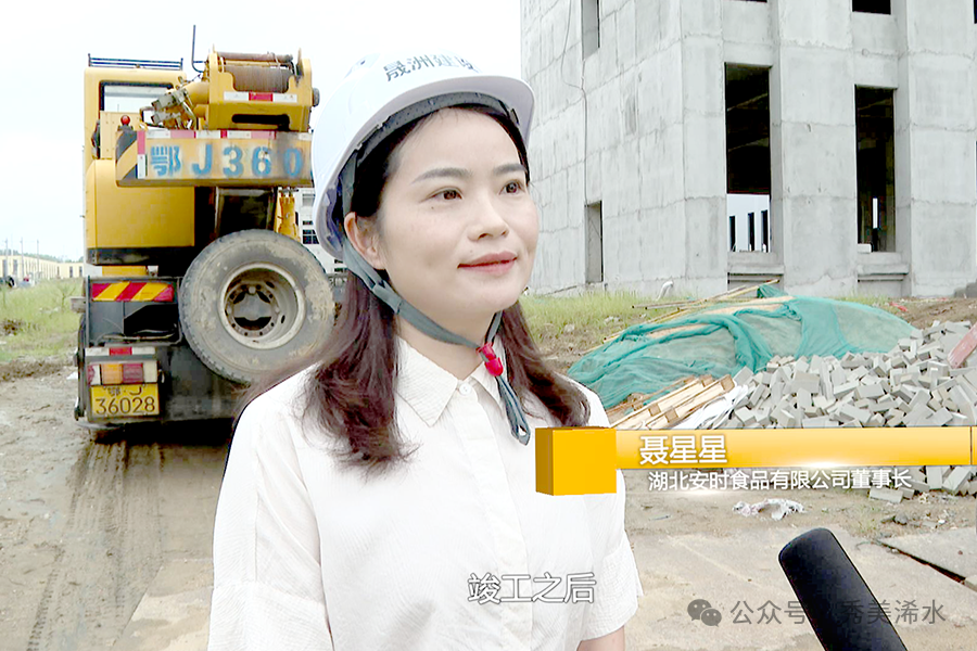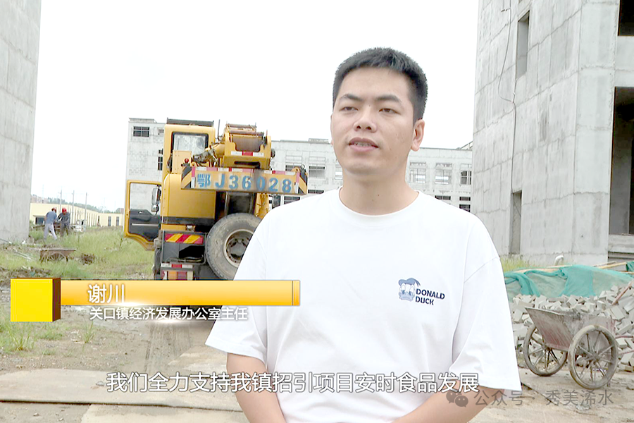 安时食品有限公司董事长 聂星星:在整个项目建设过程当中,前期遇到了一些问题,水电的进场,包括平整的问题。在关口镇服务专班的全力支持下面,快速得到了解决,加快了整个项目建设的进度。
