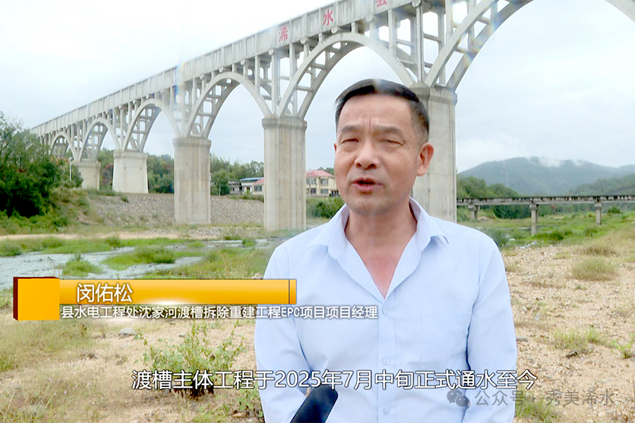 县水电工程处沈家河渡槽拆除重建工程EPC项目项目经理 闵佑松:渡槽主体工程于2025年7月中旬正式通水至今,实测结果显示,在充水、稳定运行和交流运行阶段,渡槽结构的位移和应变均在设计允许范围内。