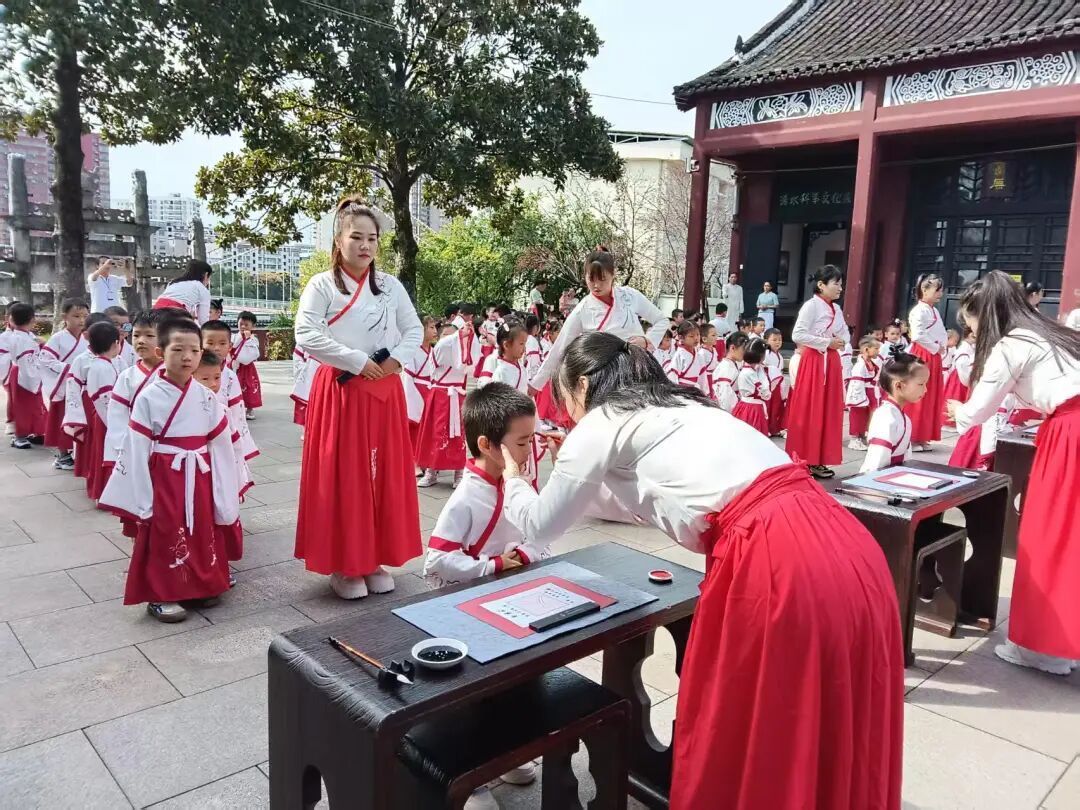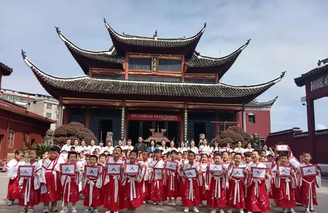 乙巳年仲秋,天高云淡,金风送爽。一场由浠水博物馆与铭威幼儿园联合举办的以“朱砂启智·开笔启蒙”为主题的典礼在浠水文庙举行。学童汉服,师长青衣,礼乐雍容,仪轨煌煌。此礼承周代释菜之古意,融现代教育之精神,以三献之礼敬先师,以朱砂之智启童蒙。