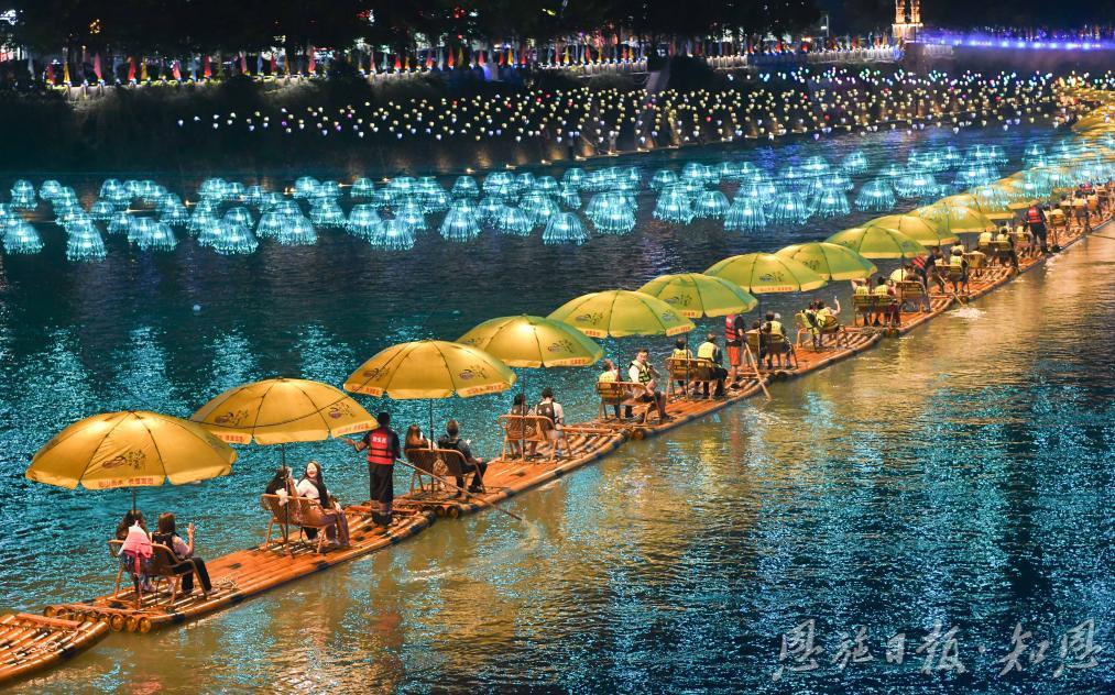 宣恩仙山贡水旅游区,湖北唯一以县城核心区域为支撑的AAAA级景区,惹溪街的烤鱼飘香,凌波桥的铁花游龙,墨龙桥的夜宴贡秀,浪漫宣恩的烟火气串联起民宿集群、餐饮街区、露营基地与商业综合体,短短半年接待游客900余万人次,带动旅游综合收入超过60亿元,“仙山贡水・浪漫宣恩”的火爆“出圈”,为全面振兴注入了生机活力。
